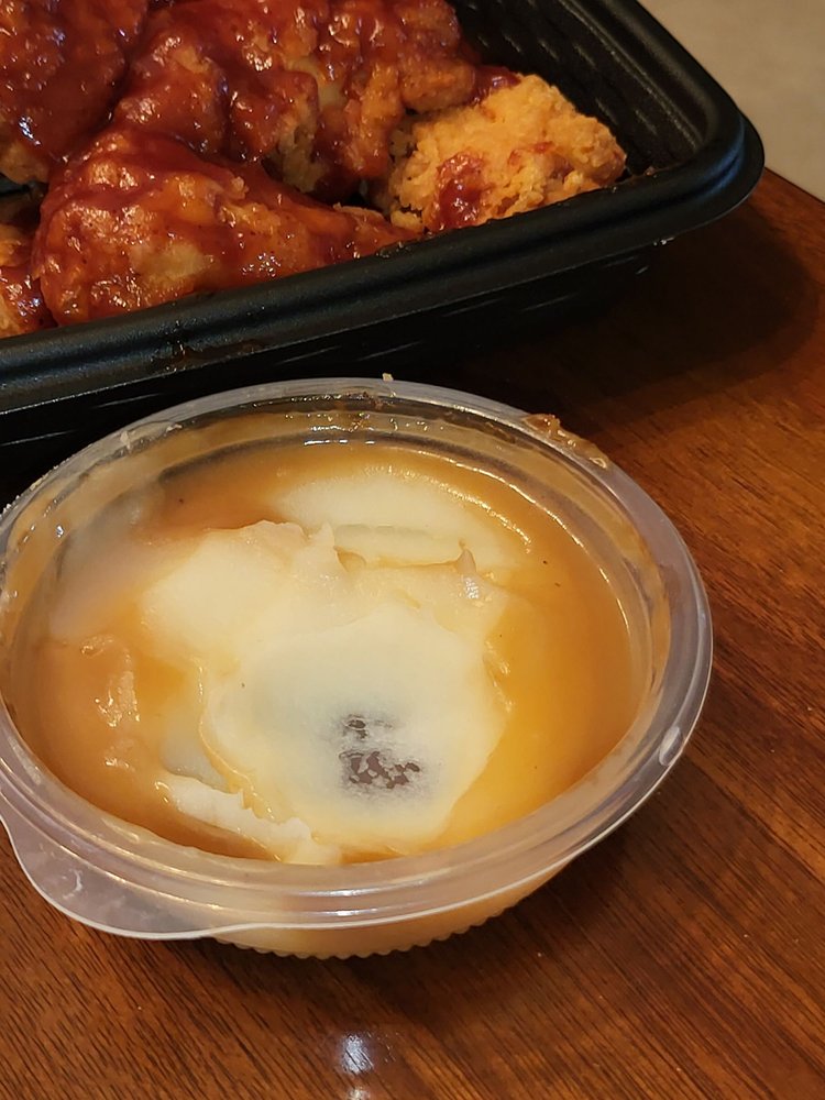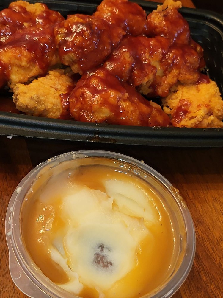 Creamy mashed potatoes, sweet corn and bite-sized chunks of crispy chicken are layered together then drizzled with home-style gravy and topped with a perfect blend of three shredded cheeses and our signature Nashville Hot sauce.