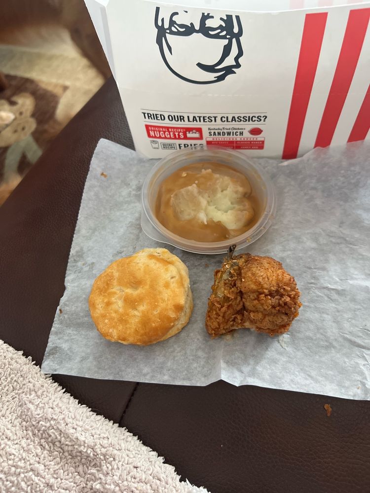 3 pieces of chicken available in Original Recipe or Extra Crispy 2 sides of your choice, a biscuit, and a medium drink